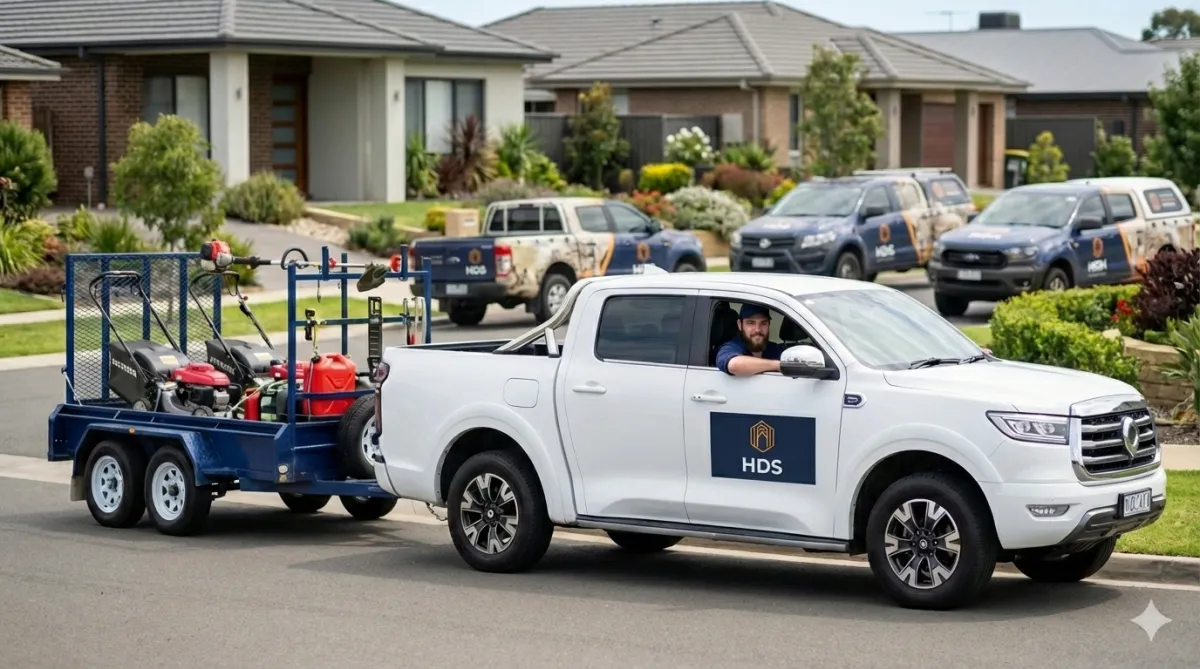 Professional push mowers matched to residential blocks. No oversized gear tearing up turf, no shortcuts.